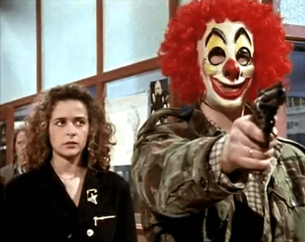 But is any of this “tackling” the issue of firearms control? Better: was firearms control any kind of issue in the UK in the early 90s? A few years after this episode, the UK’s only school shooting took place in Dunblane, and the (Conservative) government’s totally uncontroversial response was to ban handguns. Rather than saying this episode “tackled” an issue, we might be better off seeing a pattern: that in Press Gang, there are only two episodes (I think) in which guns are used as part of the narrative. In both instances they are fired by lonely boys who seem to have problems with their families (Donald Cooper says that his mother might notice him, as a result of the siege). And crucially, the guns are used for suicide. If anything, even two instances of this pattern seems like quite a high incidence of gun suicide among teenagers for Lynda and the gang to encounter; if anything, this pattern seems to be telling us that you may never be standing far away from someone who is far more desperate than they appear.